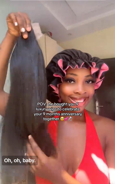 A man has demonstrated exceptional thoughtfulness by purchasing 9 luxury wigs for his girlfriend to celebrate their 9-month anniversary.