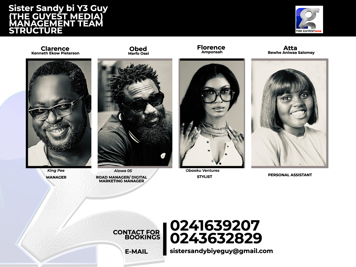 The newly unveiled team brings diverse skills in media production, digital strategy, brand management, and creative direction. The brand now has a financier and an overall General Manager, supported by a manager, road and digital personnel, a stylist, and a personal assistant (PA). Together, they aim to strengthen the Sister Sandy brand, expand its reach, and deliver high-quality content and experiences to audiences both in Ghana and beyond.