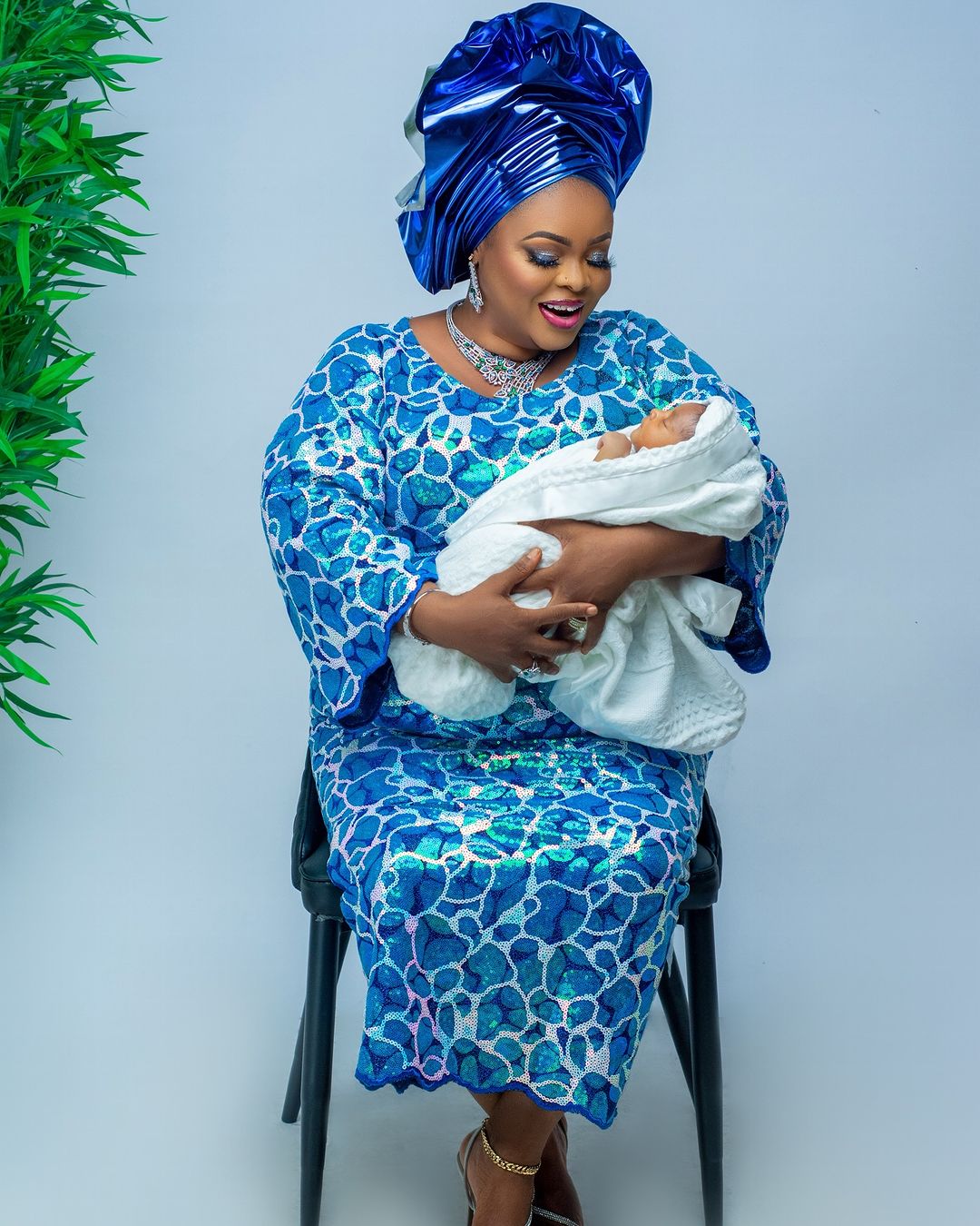 The 41-year-old actress expressed her happiness on Instagram with pictures of herself and her newborn accompanied by his name, Oluwafirewamiri Shaun Abdulrasheed Akanni.