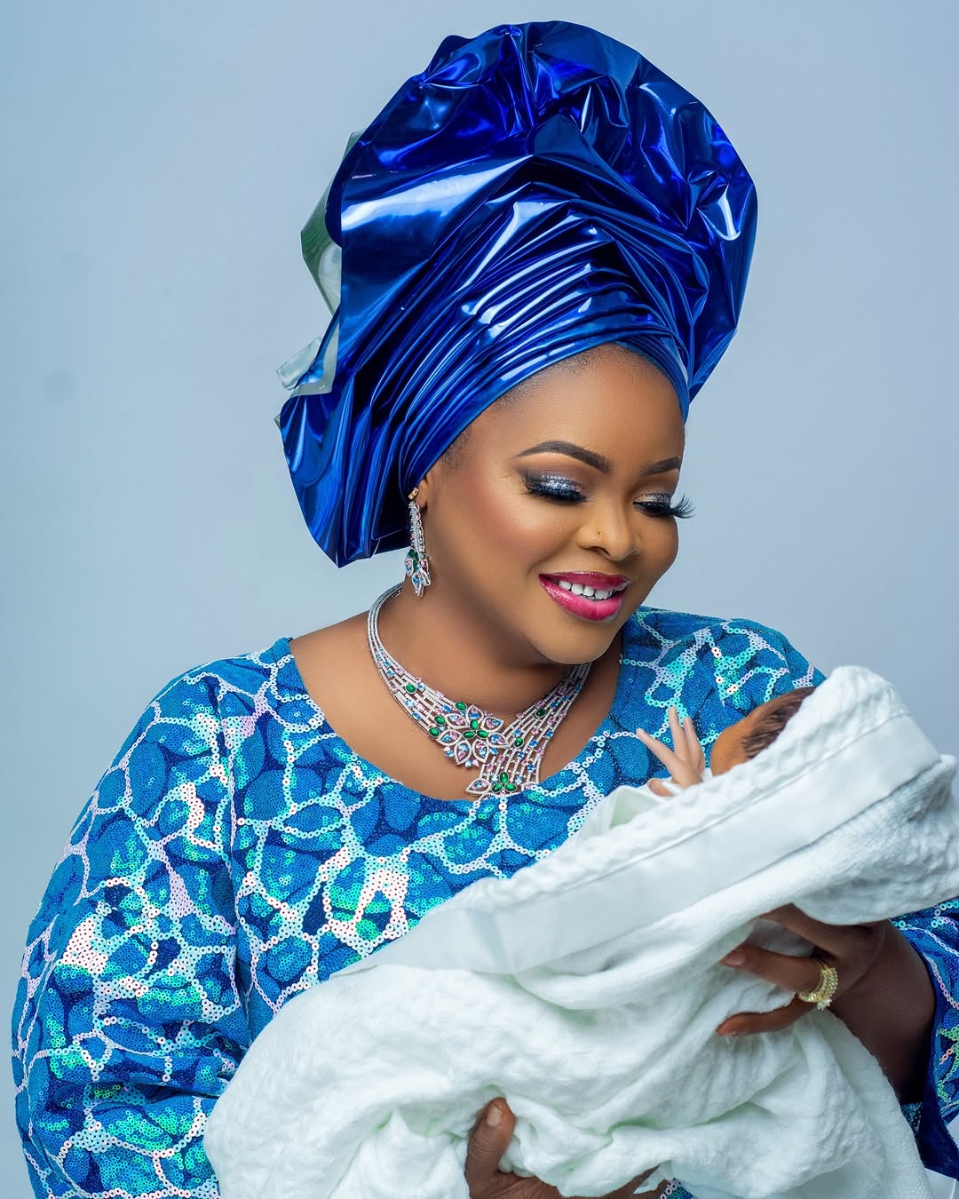 Nollywood actress, Dayo Amusa has taken to social media to reveal her baby’s name, posting stunning pictures to commemorate the special mother-son moment.