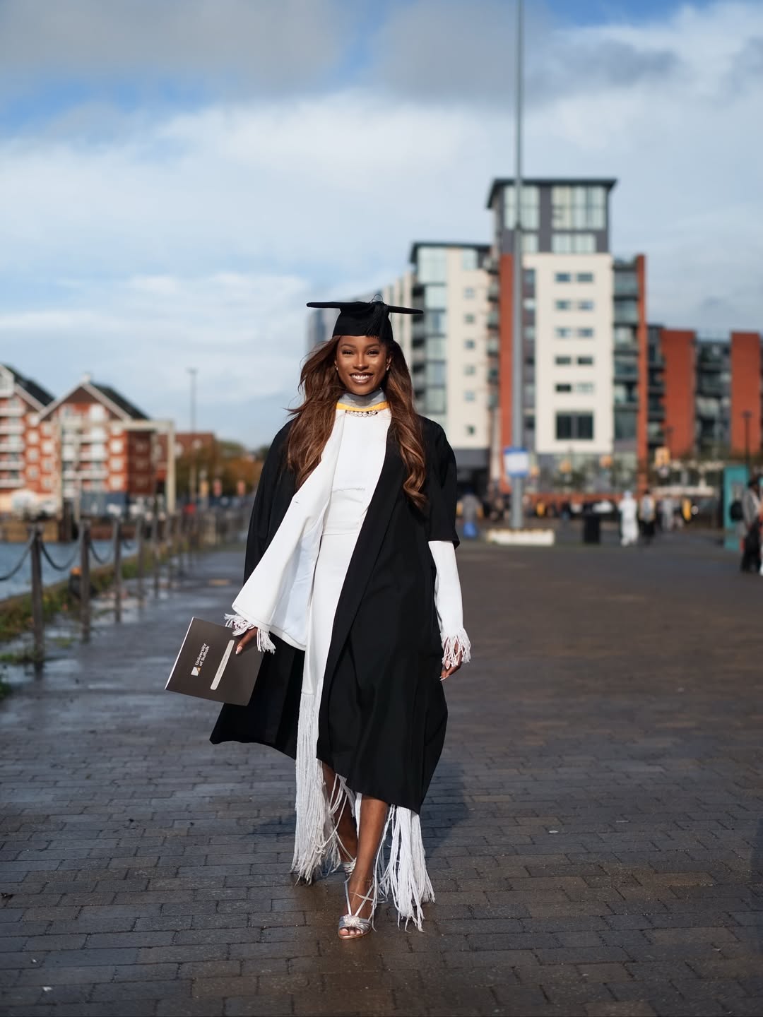 She shared photos and videos from the graduation ceremony with a light-hearted caption that read, “A Master of Science in Public Health. My 3rd degree. Forever doing side quests.”