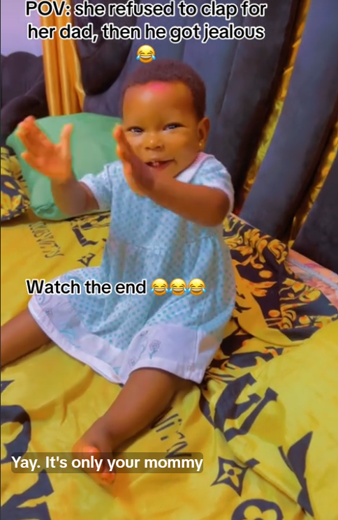 A little girl’s selective applause sparked jealousy in her father after she clapped enthusiastically for her mother but refused to do the same for him.