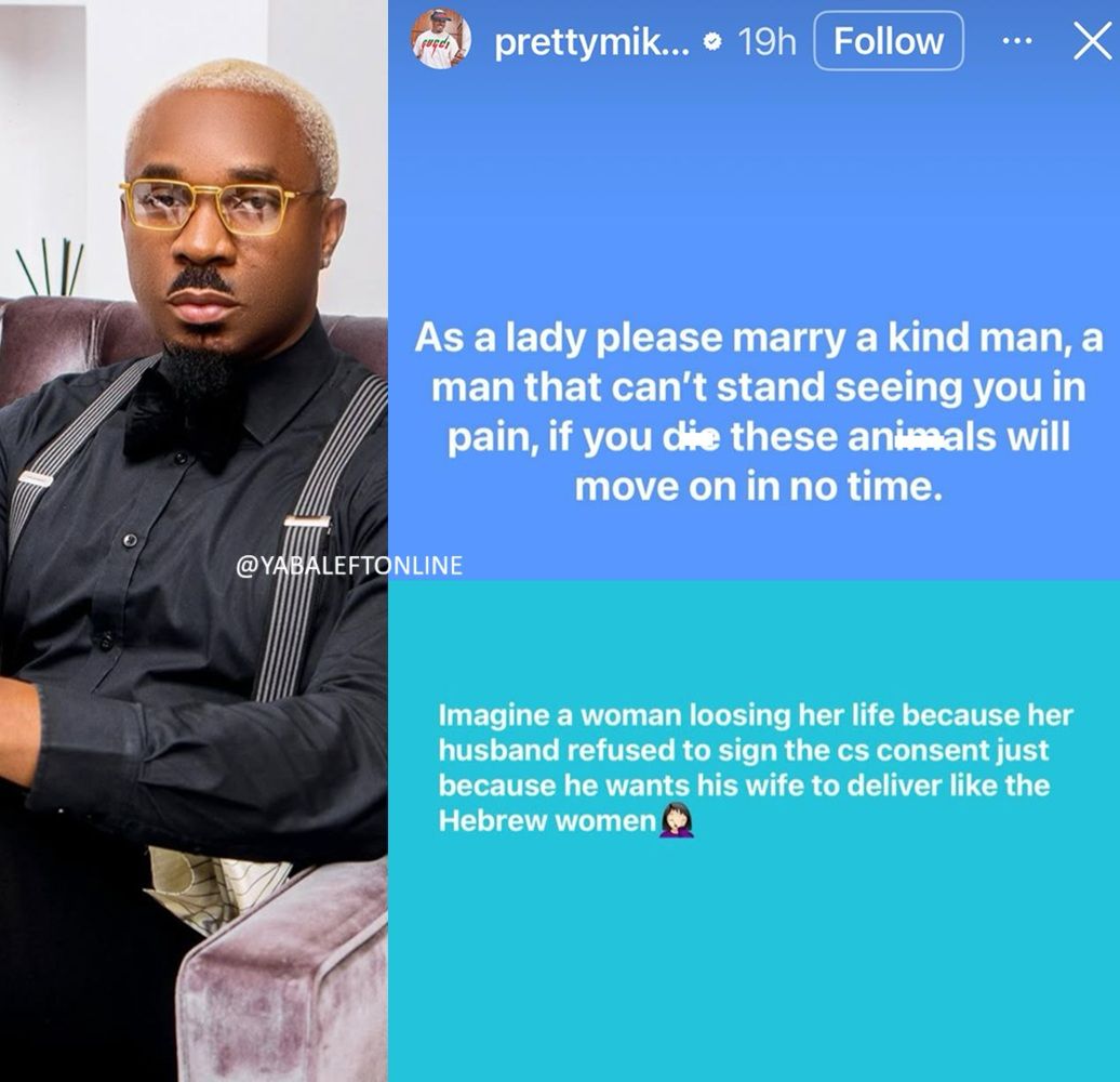Pretty Mike urged women to prioritize emotional safety and compassion in relationships while condemning the husband’s decision who insisted that his wife delivers like a ‘Hebrew woman.’