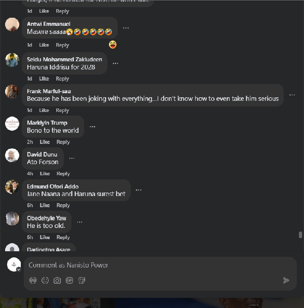 Others speculated about potential competitors, mentioning names such as Minister of Education Haruna Iddrisu, Chief of Staff Julius Debrah, Vice President Professor Naana Jane Opoku-Agyemang and Finance Minister Cassiel Ato Forson.