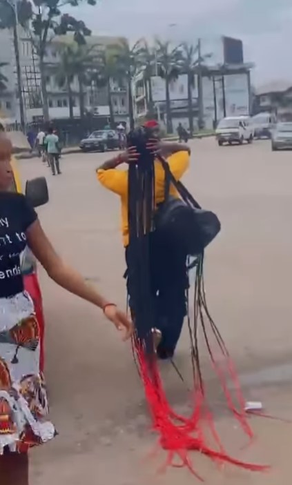 A Nigerian lady attracted attention with her incredibly long braids while strolling down the street in Benin City, Edo State.