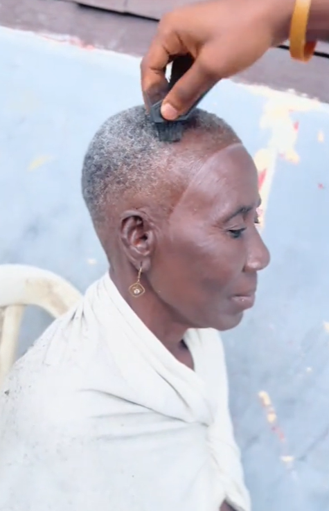 By cutting her hair short and achieving the ideal hairline, @iam_ndsmart completely transformed her appearance. In a few minutes, her elderly aspect was replaced with a youthful appearance.