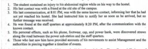 The male student whose identity has yet to be revealed suddenly collapsed, hitting his head against the pavement. Inspecting his body, it was discovered that before the fall the student had sustained various injuries.
