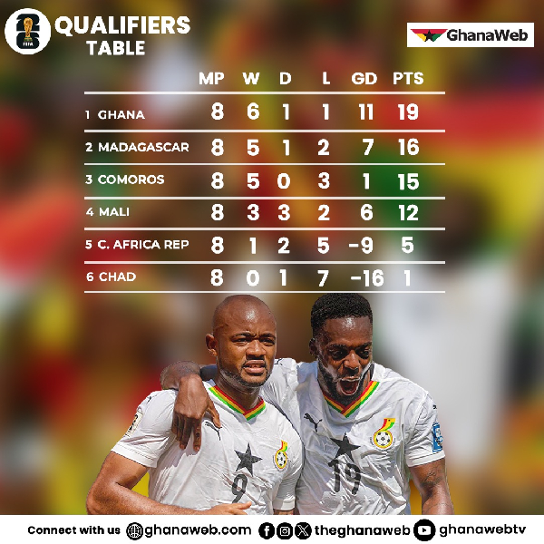 The Black Stars are on course to book their ticket to the 2026 World Cup after topping Group I with two games remaining.