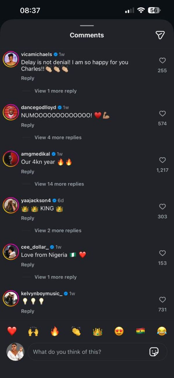 Other celebrities such as Yaa Jackson, Medikal, Victoria Michaels, Dancegod Lloyd, Kelvyn Boy, Serwaa Amihere, Agbeshie Music, Kweku Flick, Dadie Opanka, J. Derobie, Article Wan, Frank Naro, and many others have also flooded Shatta Wale’s comment section, showering the dancehall artiste with praise and admiration.