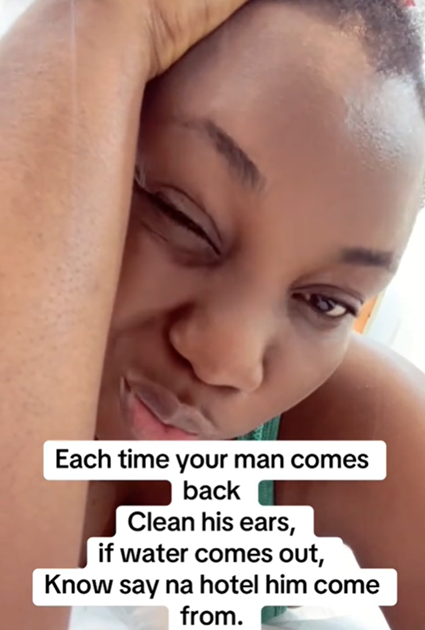 You are at:Home»News»Africa News»“Each time your man comes back, clean his ears. If water comes out, know say na hotel him come from” – Lady drops update (VIDEO)