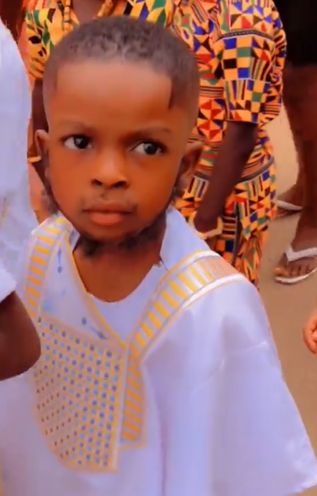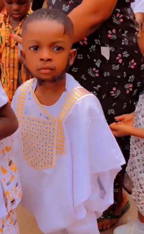 A video posted by a tweep @DAMIADENUGA displayed the little boy in an agbada outfit alongside his peers of the same age, who were all dressed in various traditional attires.