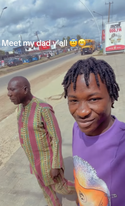In a video shared online, the thoughtful son @Louispoko introduced his father to Internet fans by sharing a selfie video of the father-son occasion.