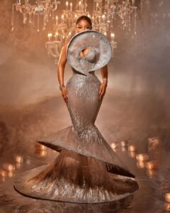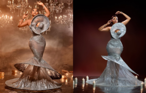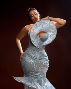 This design, featured as one of the pinned posts on Veeke James’ Instagram, was worn by Nigerian actress Toke Makinwa to the 2024 AMCA.