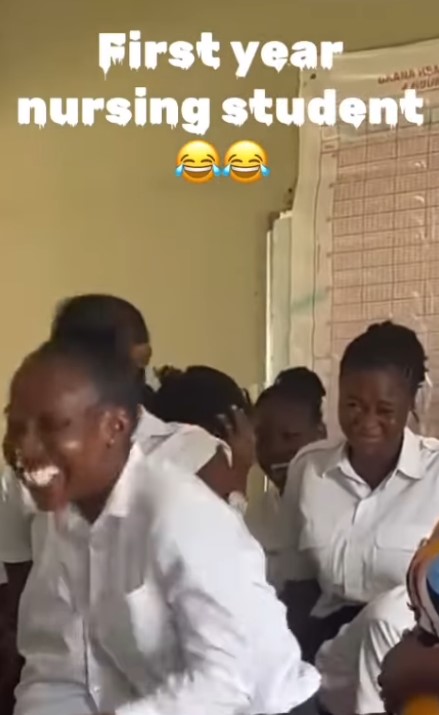 A group of female nursing students was shown in a video shared by @jameskumbeni practicing taking vital signs in front of the class under the supervision of an instructor.
