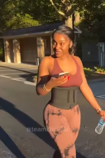 Within the widespread video, Chioma was seen strolling round their neighbourhood, sporting a waist coach and a gymnasium uniform, suggesting that she was both going to the gymnasium or returning dwelling after figuring out.
