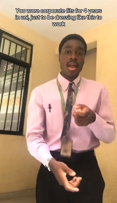 The man @damolaa_x showed a clip of himself in corporate fits, which was the obligatory attire at the private university, in the video.