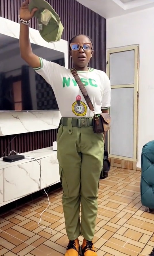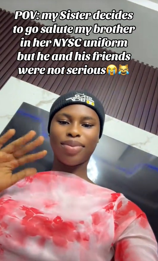 Her sister who was newly enlisted in the NYSC decided to honour their eldest sibling in a special way wearing her uniform and saluting him.