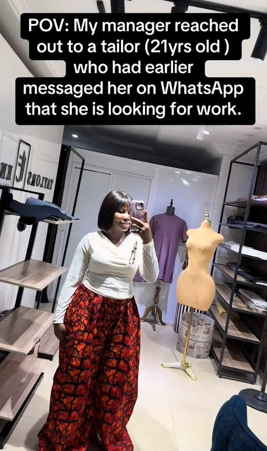 The businesswoman @haleemah_ysf shared on TikTok that her manager had contacted the tailor, who had sent them a WhatsApp message stating that she was seeking employment in fashion design.