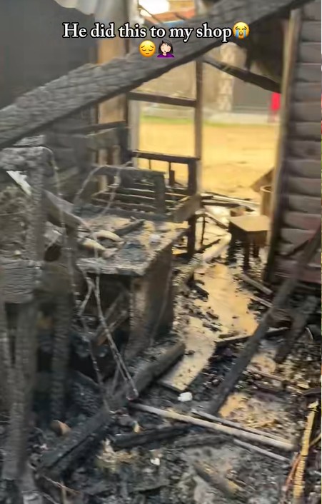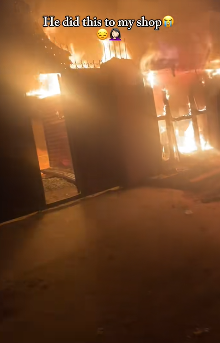 A video has sparked a conversation online after a lady revealed her ex-partner set her shop on fire after she ended the toxic relationship with him.