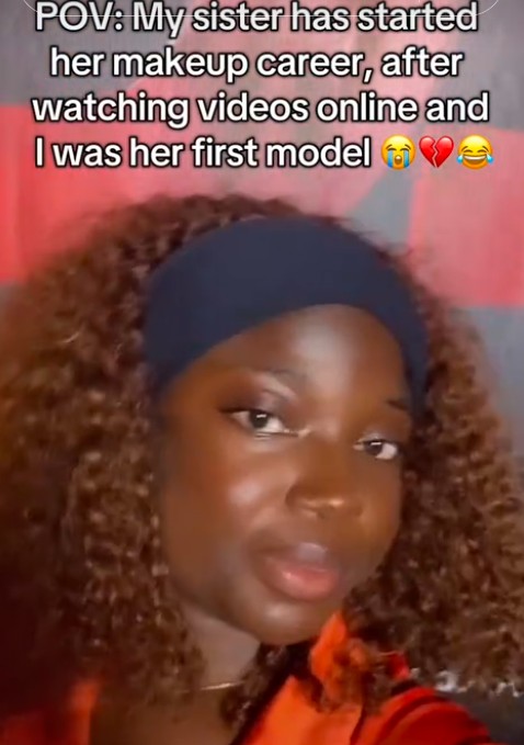 A lady captured attention online while modeling for her sister, who has just started her makeup career after watching videos online.