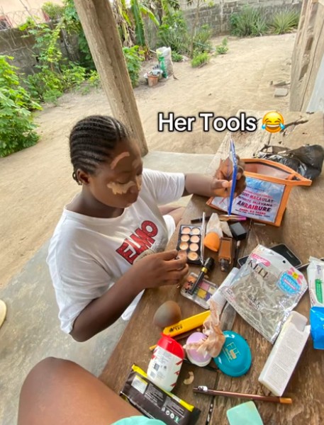 In the clip, the lady @olicksofficial24 shared the makeup process, recording herself sitting patiently while her sister enhanced her beauty by practicing her online tutorials.