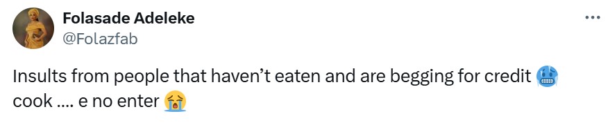 The tweet has triggered negative criticism online with many scolding Folashade for shaming the needy because of her family’s wealth.