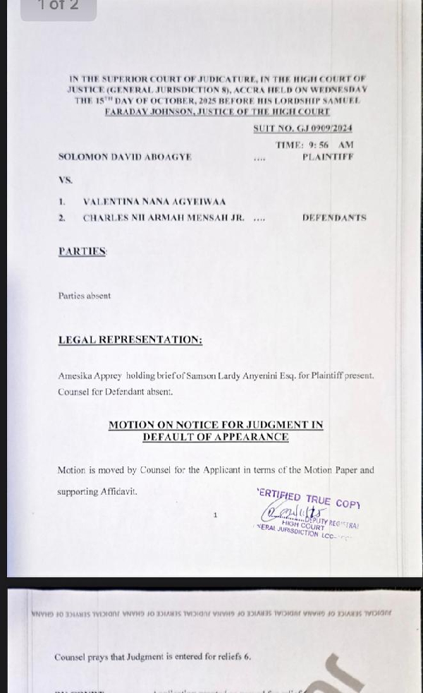 The ruling followed successful legal arguments by the plaintiff’s lawyers on an application for default judgment after the defendants failed to enter appearance, even though they were duly served through substituted service using different methods as directed by the court in 2025.