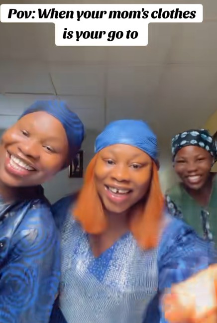 A group of ladies took to social media to reveal their mum’s hilarious reaction after wearing her clothes in their video.