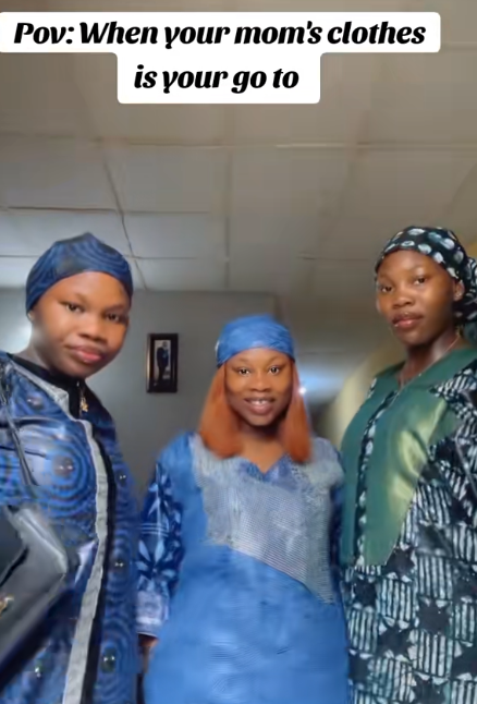 In the video, their mother danced and asked in jest why her three daughters were wearing her outfits. The women started laughing because their mother’s response was amusing and surprising.