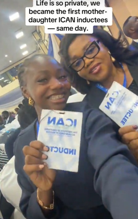 A lady and her mother celebrated a historic moment as the first mother-daughter pair inducted into The Institute of Chartered Accountants of Nigeria (ICAN) together on the same day.