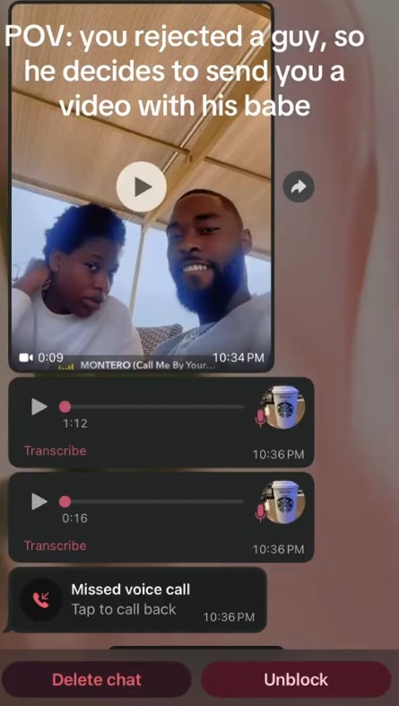 Lady reveals how a man she rejected sent her a video of himself with his babe (Watch)
