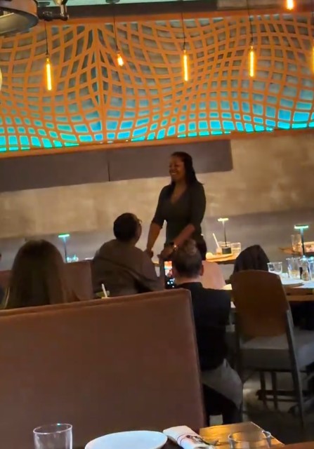 A lady screamed in excitement after witnessing a surprise proposal while filming herself at a restaurant.