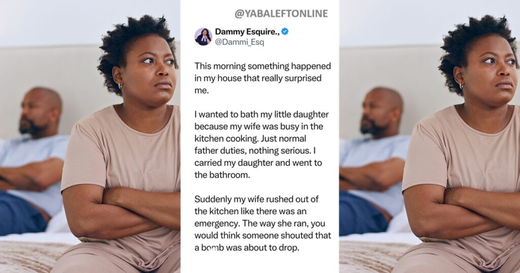 According to the story, which was posted on X, by a lady known as Dammy Esquire: a husband is seeking answers to his wife’s surprising reaction, after she saw him trying to bath their four-year-daughter.