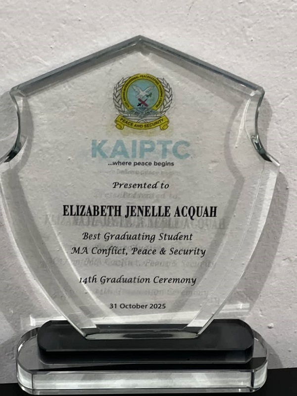 “Competing among other students in the Conflict class, D/PW/C/Insp Elizabeth Jenelle Acquah distinguished herself with an outstanding cumulative grade point average, putting her at the top of the graduating class. The degree was conferred on her on October 31, 2025,” portions of the statement read.