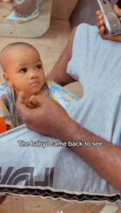 In a short video she shared on Instagram, the lady showed the before and after of her little boy’s haircut.