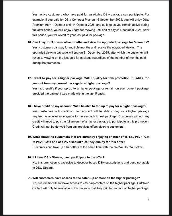 According to posts circulating on social media, MultiChoice said the enhanced packages are part of a promotion scheduled to end in December 2025.