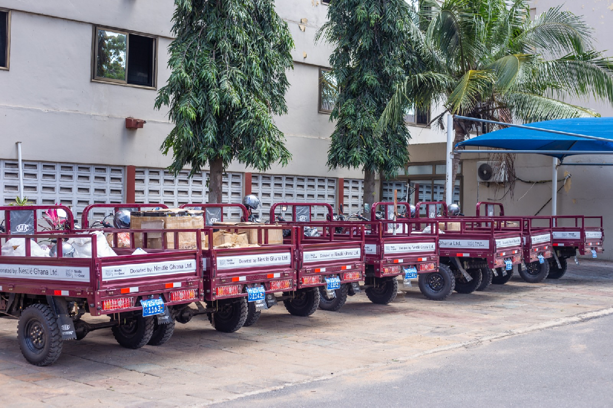Accra – Nestlé Ghana Ltd has donated 10 tricycles and other important supplies to the Kpone Landfill Waste Pickers Association to support their crucial role in the collection of plastic waste for recycling.