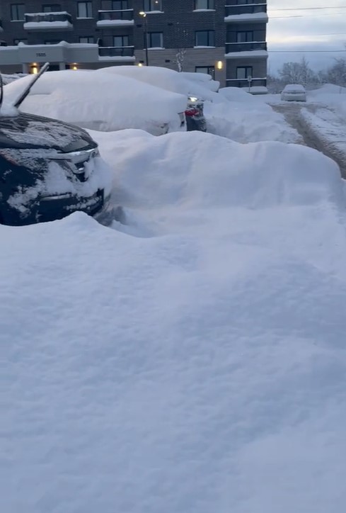 The woman @adetinkan2 wearing a winter coat was captured on camera celebrating the start of the 2024 winter season while the neighbors tried to clear the snow from the road.
