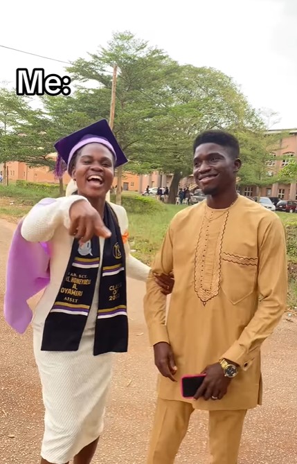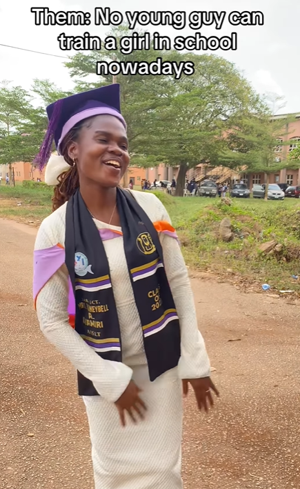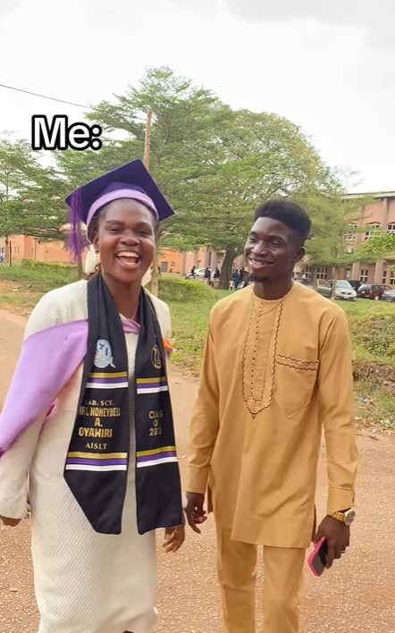 As the true MVP for funding her schooling and putting an end to skeptical individuals, @iamhoneybell featured her husband, who was feeling shy in the video.