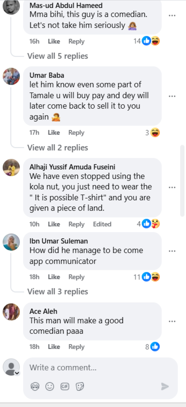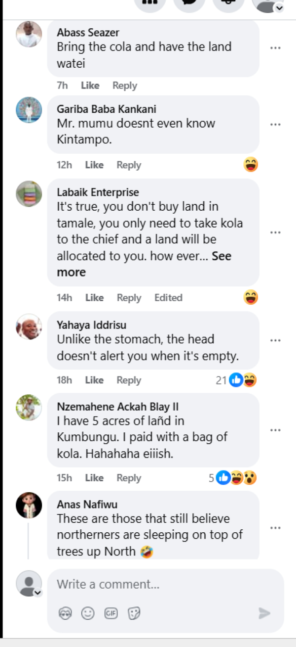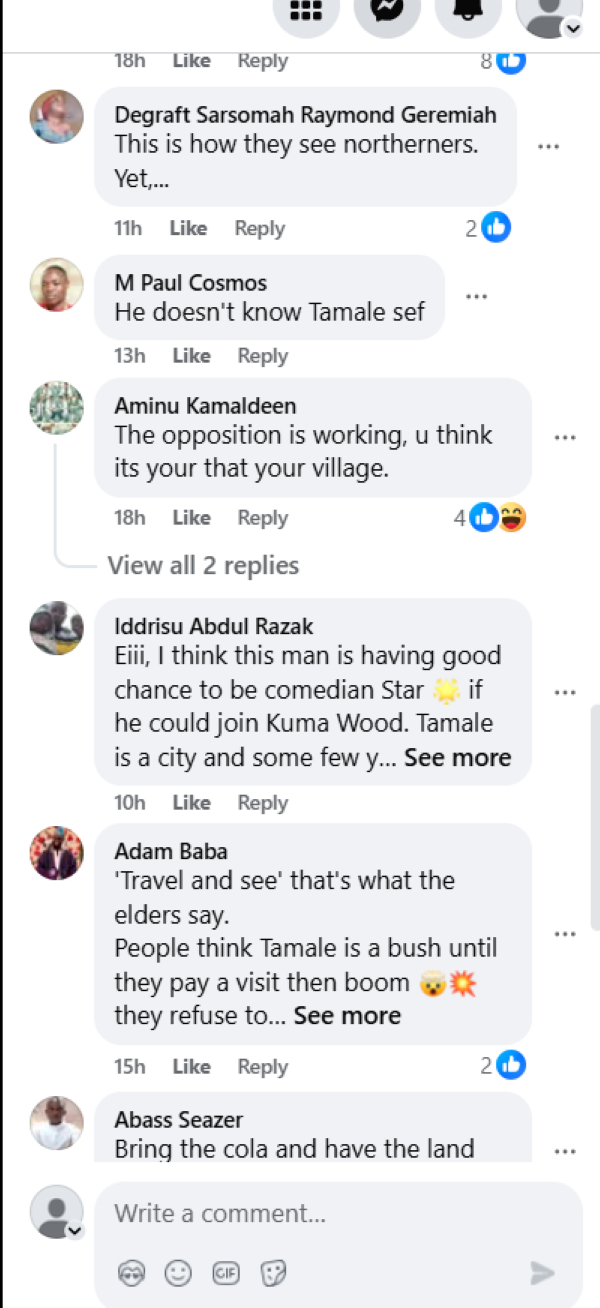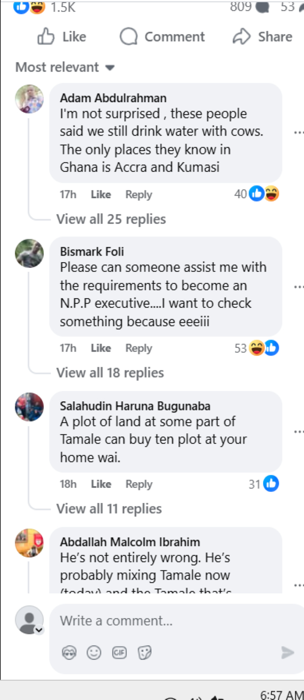 Several Facebook users took to the comments section to express disappointment and anger over the remarks, accusing the NPP executive of promoting stereotypes about people from the northern part of the country.
