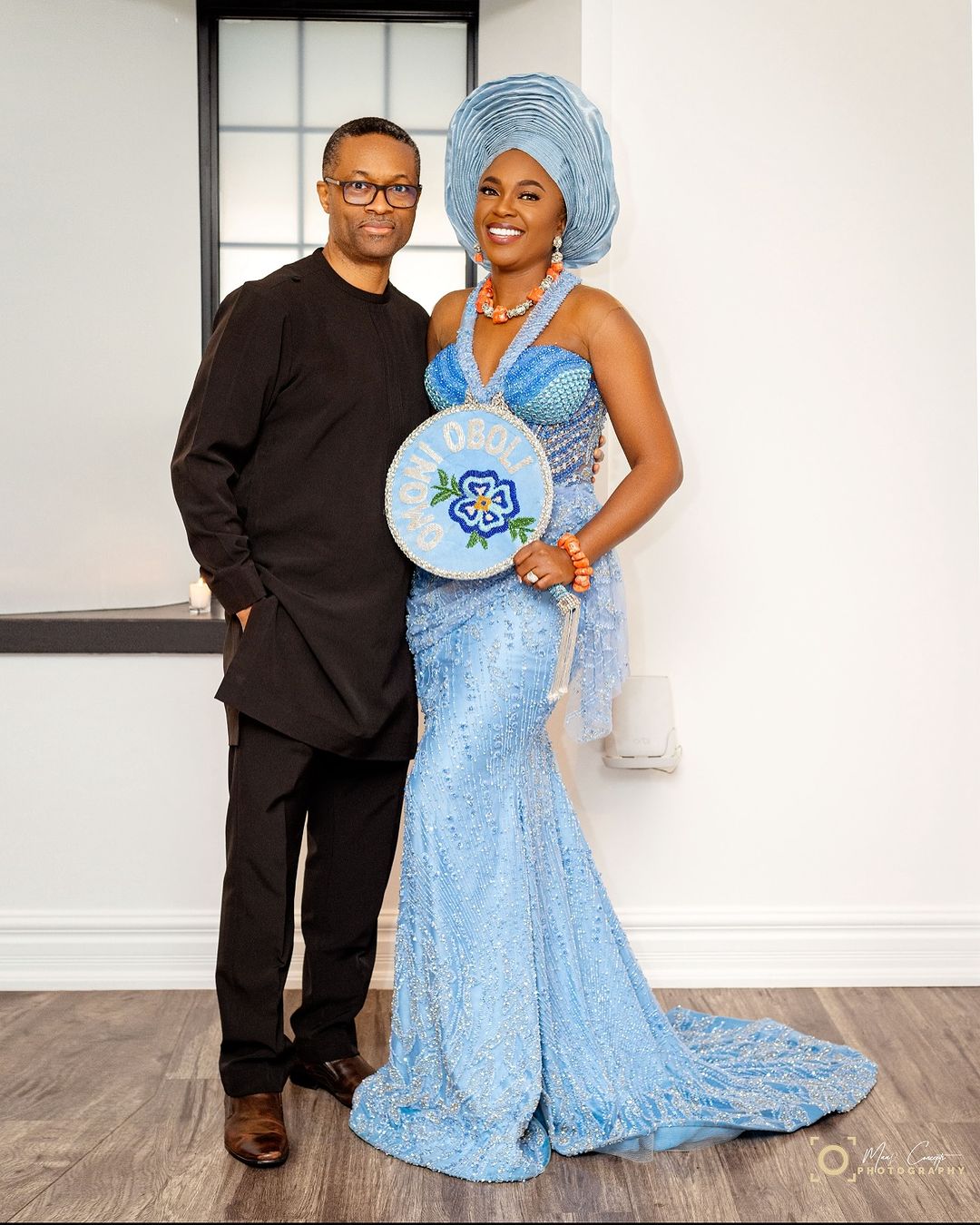 Omoni posted a photo of them at their son’s wedding and a vintage photo of them on her Instagram page to commemorate their anniversary.