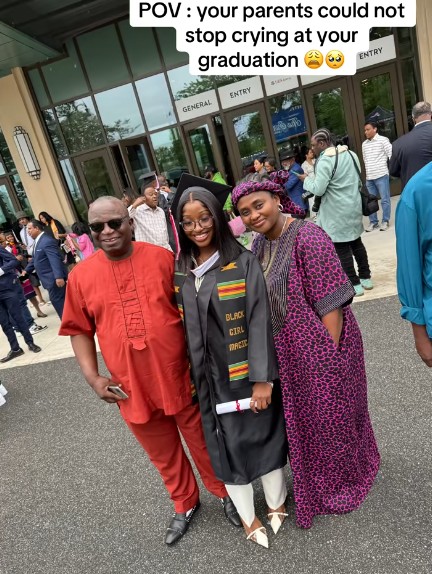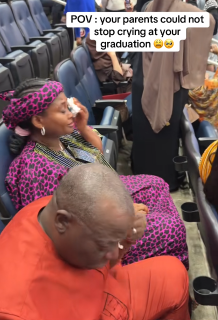 A lady captured the touching moment when her parents cried tears of joy during her graduation from a university abroad.