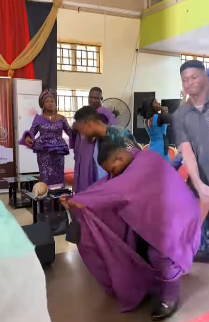The video showed young males showing off the Agbada in the holy space while dancing vivaciously like the biblical figure David.