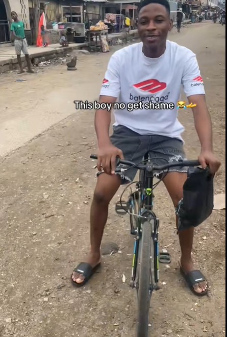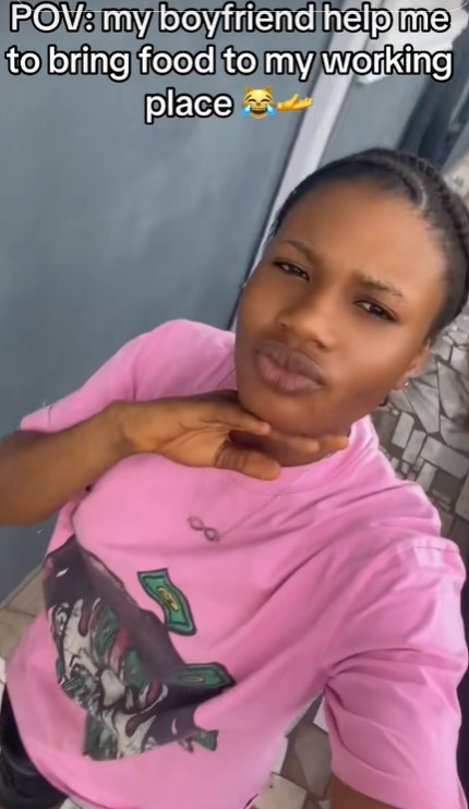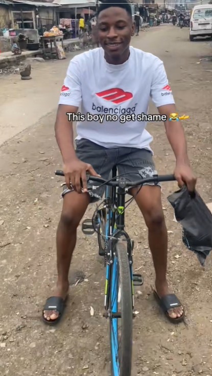 In the video she posted, the lady @baiby.paid yelled when she noticed her boyfriend riding a bicycle while carrying her food in a polythene bag.