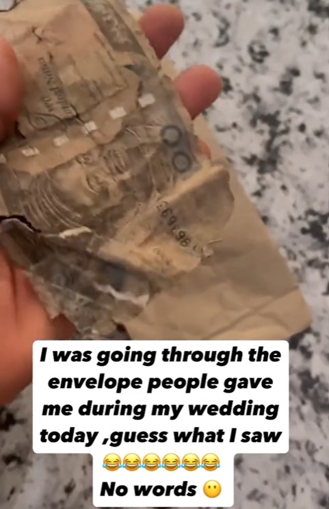 A newly wedded bride’s excitement turned to dismay upon discovering a torn and tattered ₦200 note enveloped as a wedding gift.