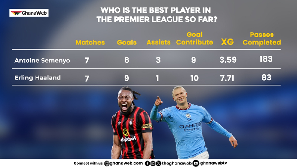 Semenyo’s overall play up front has placed him in the conversation for the best player in the league after seven games, while Haaland continues to showcase his world-class talent.