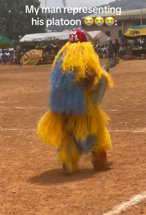 A lady expresses disappointment about her boyfriend’s display at the NYSC cultural festival, highlighting that his fellow male corpers represented their platoon wearing royal attire while he chose to be a masquerade.