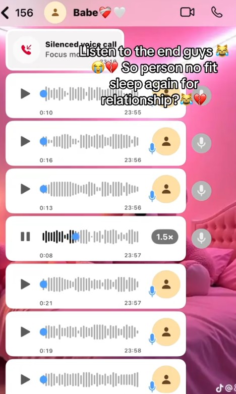 She had allegedly dozed off earlier than expected and didn’t get the chance to send her usual goodnight message. By the time she woke up, she was met with numerous voice messages from her man, who had clearly noticed her sudden silence.