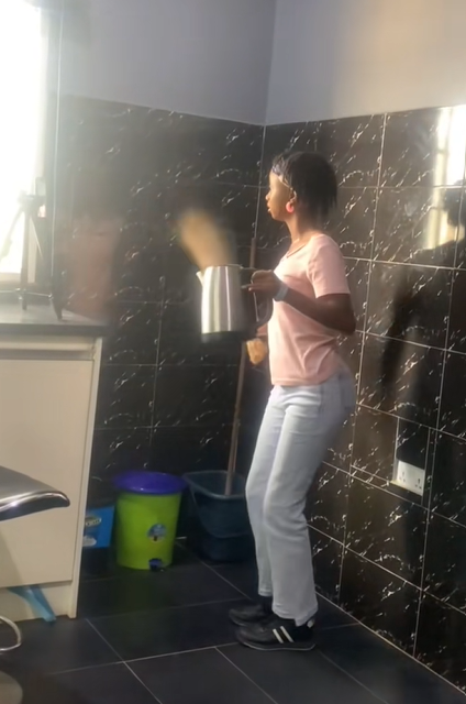 According to the online clip, the woman @big_babyyyyyyyyy, mentioned that she went to the office’s kitchen only to discover a female colleague holding an electric kettle and a broom while dancing before the camera.