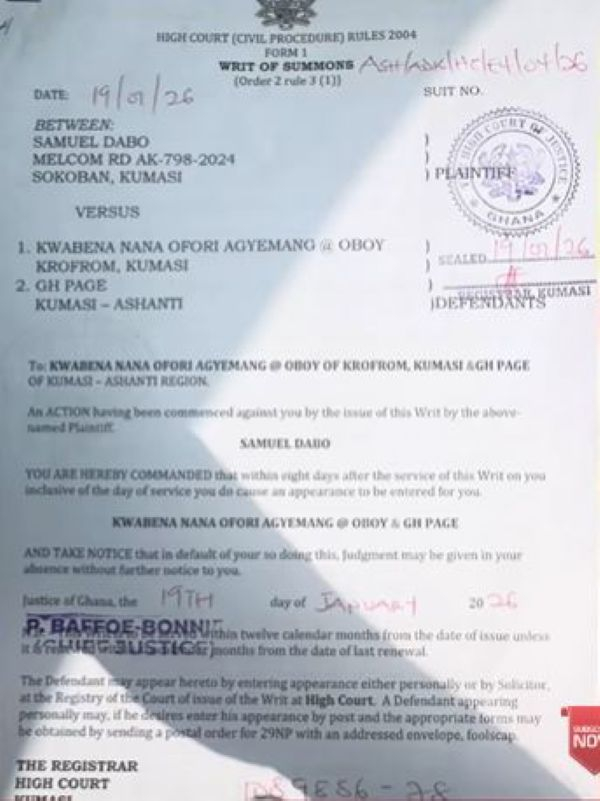 Per a writ of summons seen online, Yaw Dabo has filed a defamation lawsuit against Oboy Siki.